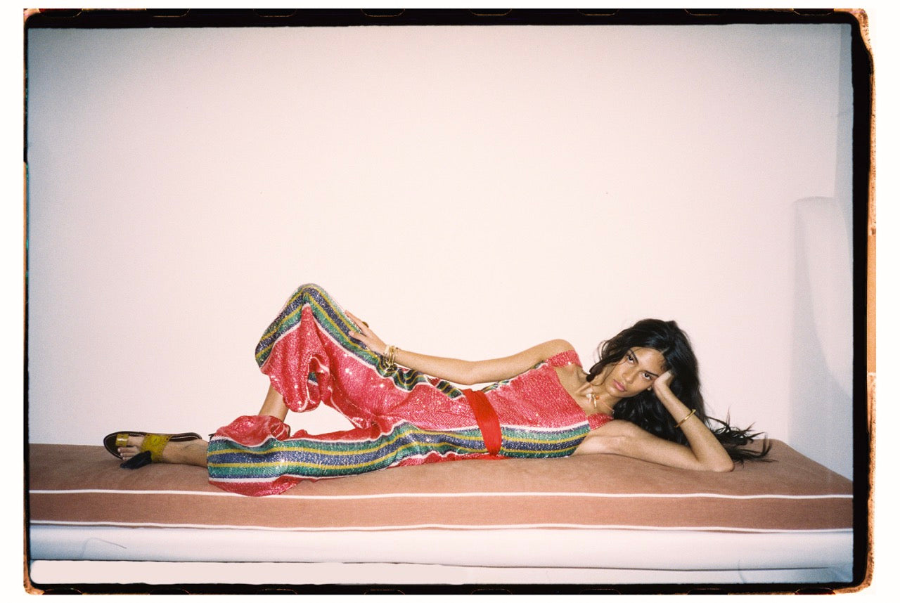 Summer SS26 — shot by Kate Bellm at Hotel Corazón. Fresh air, bold color, silk, sequins, and soft knits. Handmade in Spain.