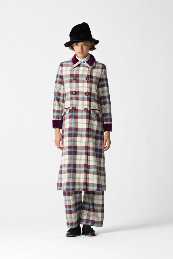 Miranda Coat Tartan Celeste