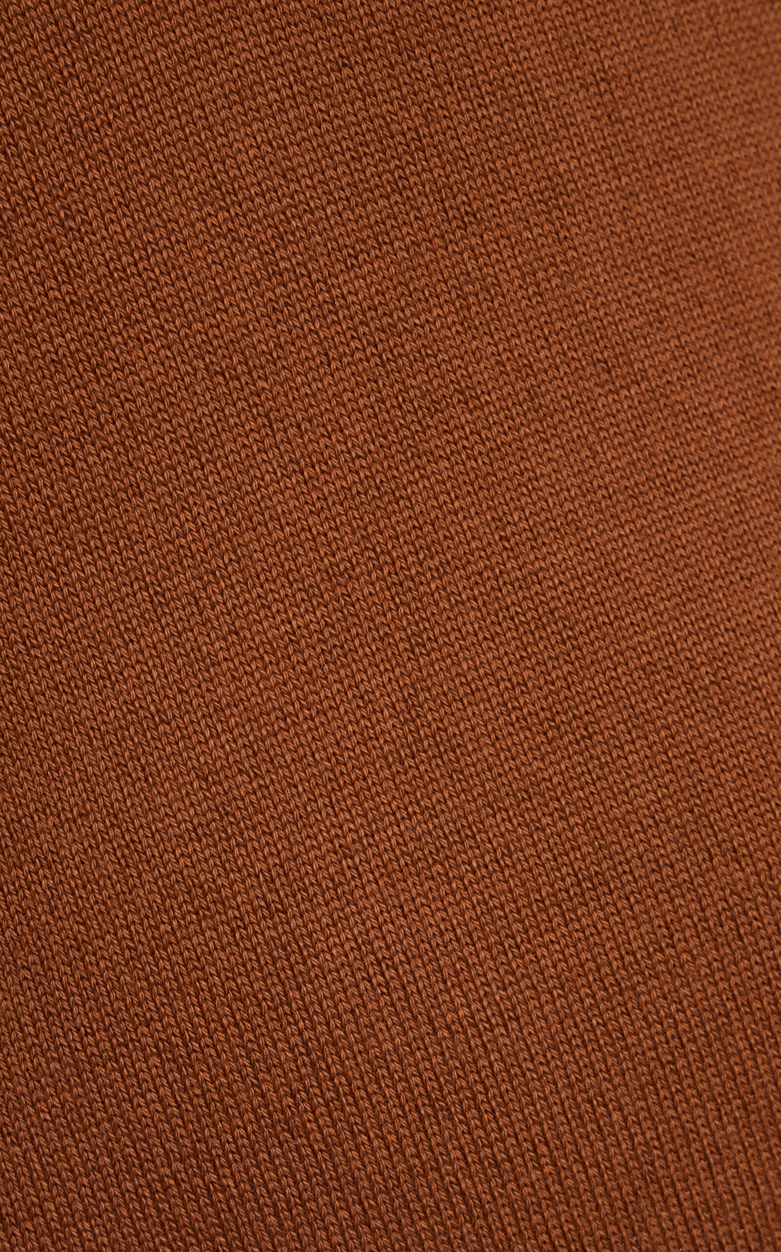 Knitted or smooth fabric bodysuit in brown with neck tie detail.