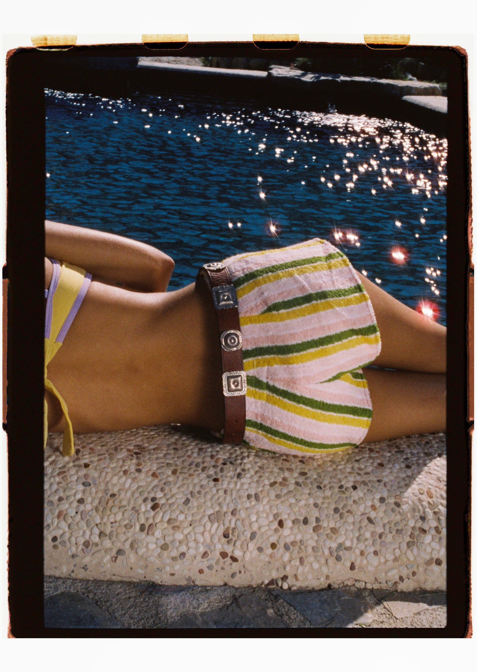 Towel shorts made in multicolour striped cotton.