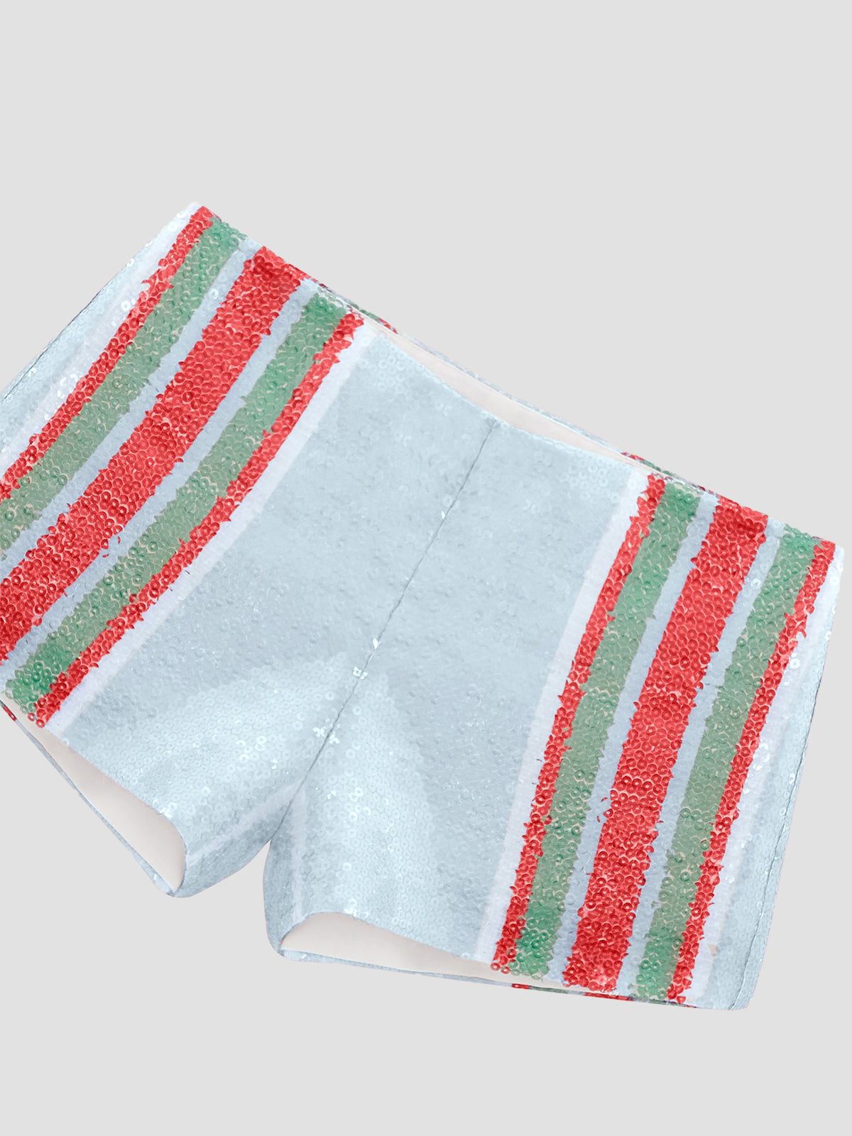 Celeste shorts in sequin with red and green stripes.