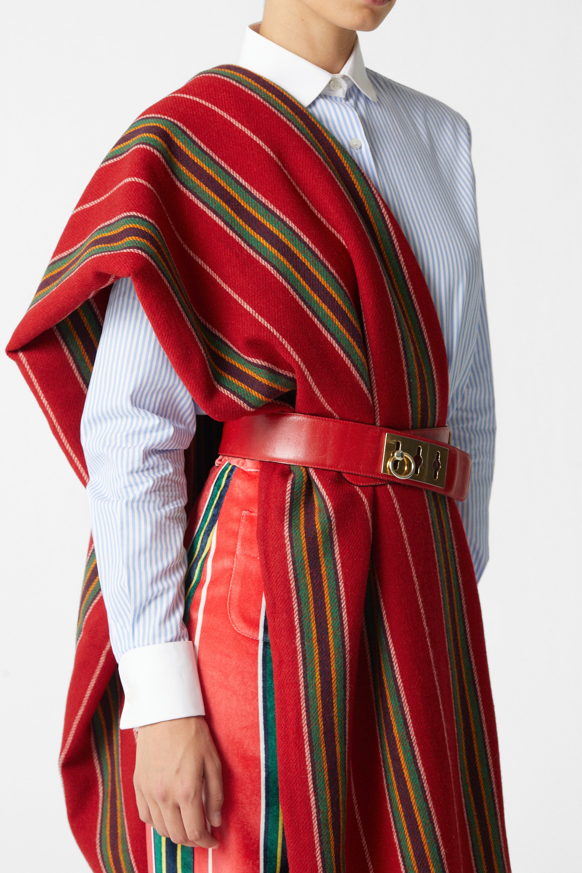 Red wool blanket in our iconic Pippi fabric. Versatile to wear as a belted wrap.