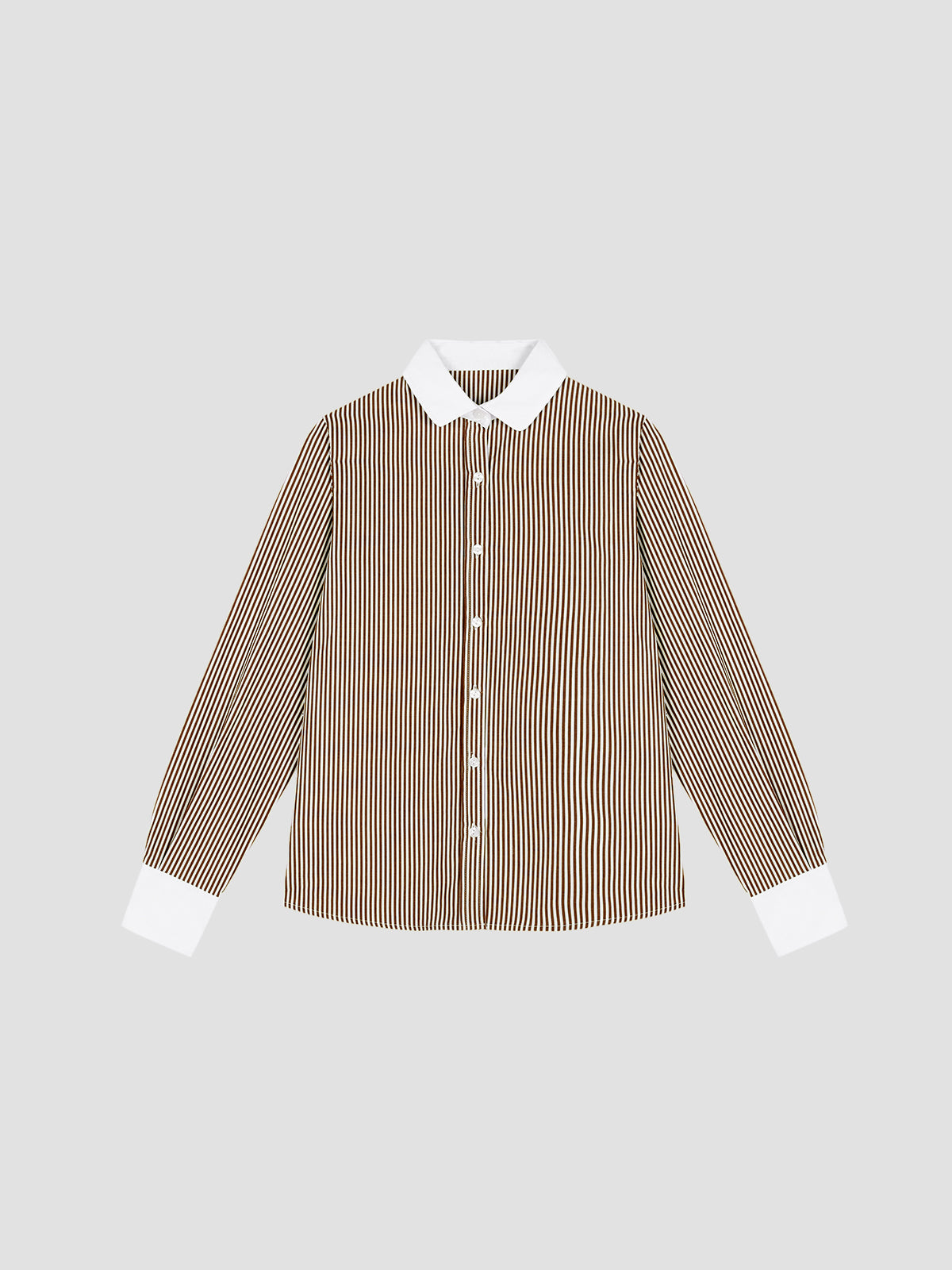 Striped cotton shirt with a contrasting white collar and cuffs.